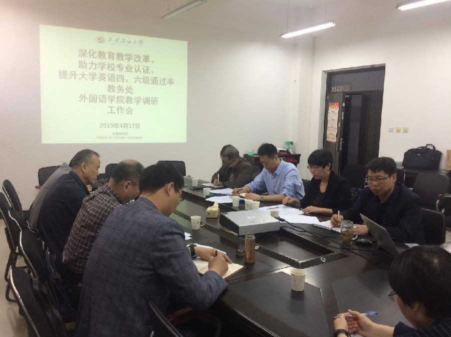 外國(guó)語(yǔ)學(xué)院大學(xué)英語(yǔ)教學(xué)部主任、課程組負(fù)責(zé)人及教師代表紛紛圍繞深化大學(xué)英語(yǔ)教學(xué)改革,提升大學(xué)英語(yǔ)四、六級(jí)通過(guò)率,配合學(xué)校專業(yè)認(rèn)證等方面問(wèn)題積極發(fā)言,獻(xiàn)言獻(xiàn)策,并與調(diào)研領(lǐng)導(dǎo)進(jìn)行了深入的探討和交流。