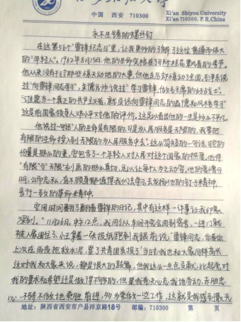 自3月5日以來(lái),化學(xué)化工學(xué)院開(kāi)展了“學(xué)習(xí)雷鋒做美德少年”的征文活動(dòng),26個(gè)團(tuán)支部58名同學(xué)參加征文比賽,其中化工1704班的陳玉坤同學(xué)在文章中這樣寫(xiě)到:學(xué)會(huì)體諒別人,學(xué)會(huì)勞動(dòng)快樂(lè),學(xué)會(huì)無(wú)私奉獻(xiàn)。生活中有許多小事需要我們?nèi)プ觥S锌赡苋プ龅牟皇撬?,不是她,而是我們?/p>