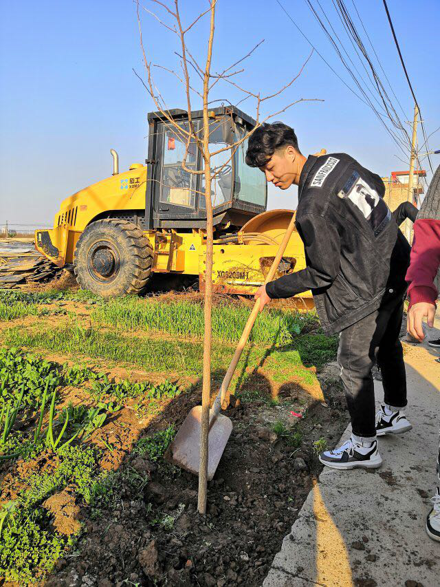 活動中,大家積極勞動,相互協(xié)作。各位黨員同志表現(xiàn)出了極高的活動熱情,向當(dāng)?shù)卮迕裾埥剔r(nóng)作物常識及植樹相關(guān)知識。村民們知無不答、答無不詳,頗為熱心地指導(dǎo)大家種樹間距、挖坑技巧,幫助同學(xué)們埋土澆水?!按龟幃?dāng)覆地,聳干會參天。好作思人樹,漸作惠化傳?!蓖瑢W(xué)們化身“綠色使者”,為剛剛蘇醒的鄉(xiāng)村送去了生機(jī),為剛剛解凍的自然帶來了溫暖。在張陽老師的帶領(lǐng)下,大家相互幫助,團(tuán)結(jié)協(xié)作,有條不紊地進(jìn)行工作。在此春暖花開的季節(jié),種下一棵棵樹苗,留下一片片綠色,收獲一個個希望。同學(xué)們的認(rèn)真負(fù)責(zé)、朝氣蓬勃得到了村民們的一致認(rèn)可和充分肯定。