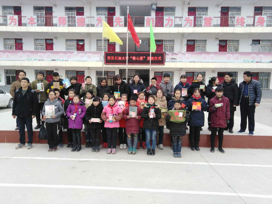1月11日,校團委組織青年志愿者團隊前往永壽縣開展“萬名學(xué)子扶千村”社會實踐活動,為鄉(xiāng)村中小學(xué)送去“微心愿”物品,為貧困戶送溫暖。