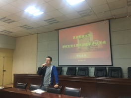 研究生院黨支部書記述職采取現(xiàn)場述職和書面述職相結(jié)合的方式進行。石工類2018級第二黨支部書記劉學斌,電工類2018級第三黨支部書記王博通,外國語類2018級黨支部書記韓香,電工類2017級第一黨支部書記童美帥,石工類2017級第二黨支部書記姜關(guān)鋒,思政類2017級黨支部書記駱語辰,石工類2016級第三黨支部書記張定周及機械類2016級第一黨支部書記賀云婷8位書記進行現(xiàn)場述職。述職過程中,各支部書記按照學校要求,從嚴守政治紀律和政治規(guī)矩,增強“四個意識”、堅定“四個自信”,堅決做到“兩個維護”;支部開展的學習教育情況、“三會一課”及黨日活動落實情況、黨費收繳管理情況、黨員發(fā)展情況和黨員先鋒模范作用發(fā)揮情況;支部建設中存在的問題等方面對2018年度支部工作進行總結(jié),提出改進措施。