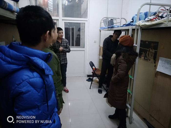 12月29日晚上,理學院黨委書記廖敏、15級新生輔導員潘德潤走訪了學生宿舍,看望慰問我院畢業(yè)班學生,送去了新年的祝福。