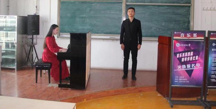 12月18日下午,音樂系2018第四屆鋼琴伴奏比賽在2號教學(xué)樓1506舉行。此次比賽由音樂系主辦,鋼琴教研室承辦,比賽分為鋼琴正譜伴奏和自彈自唱兩個環(huán)節(jié)。在正譜伴奏環(huán)節(jié),選手們精心準(zhǔn)備了參賽曲目,自彈自唱環(huán)節(jié)由現(xiàn)場抽簽決定。經(jīng)過激烈的角逐,比賽評出12名獲獎選手。