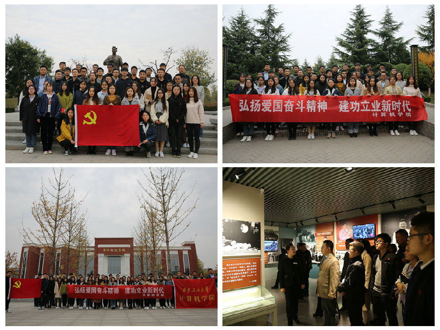 為認(rèn)真貫徹落實(shí)習(xí)近平總書(shū)記對(duì)弘揚(yáng)愛(ài)國(guó)奮斗精神作出的一系列重要指示,扎實(shí)開(kāi)展“弘揚(yáng)愛(ài)國(guó)奮斗精神,建功立業(yè)新時(shí)代”活動(dòng),進(jìn)一步拓展學(xué)習(xí)教育內(nèi)容,引導(dǎo)青年學(xué)生在新時(shí)代自覺(jué)弘揚(yáng)和踐行愛(ài)國(guó)奮斗精神,計(jì)算機(jī)學(xué)院黨委于11月3日組織四十余名學(xué)生黨員前往富平愛(ài)國(guó)主義教育基地參觀學(xué)習(xí)。學(xué)院黨委副書(shū)記龐秉謙和五名輔導(dǎo)員代表一同參加。