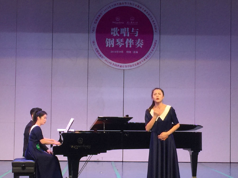 10月22日—26日由教育部主辦的全國(guó)普通高等學(xué)校音樂(lè)教育專業(yè)大學(xué)生基本功展示活動(dòng)在廣西師范大學(xué)成功舉辦。來(lái)自全國(guó)60所高校180名參賽選手參加了微課展示、樂(lè)器演奏、自彈自唱、歌唱與伴奏、合唱指揮等項(xiàng)目展示。經(jīng)過(guò)幾天的激烈角逐,最終我校音樂(lè)系的魚(yú)紫薇同學(xué)獲得個(gè)人全能三等獎(jiǎng),微課展示單項(xiàng)獎(jiǎng)。此項(xiàng)基本功展示活動(dòng)每?jī)赡暌淮?,是教育部?duì)高校音樂(lè)教育專業(yè)辦學(xué)成果的檢驗(yàn)。