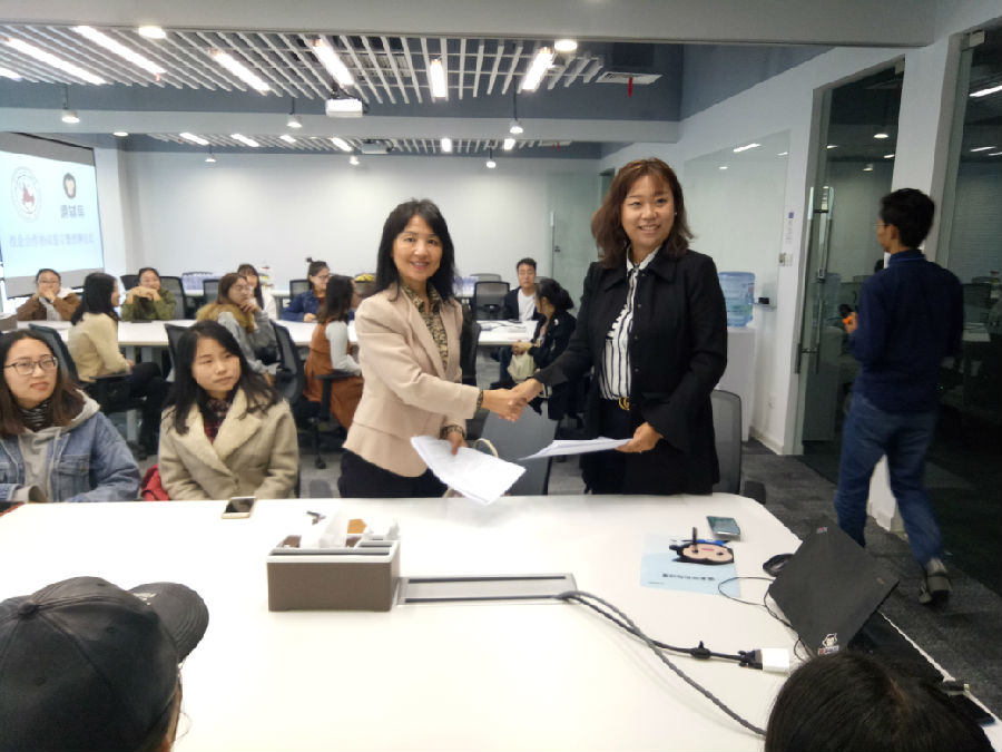 院黨委書記廖敏在總結(jié)發(fā)言中說:這次簽約儀式是外國語學(xué)院首次以學(xué)生為主,實施 “走出去”戰(zhàn)略的一次有益的新嘗試。只有以學(xué)生為主,讓更多的學(xué)生積極主動 “走出去”,參觀企業(yè),了解企業(yè)文化與背景,才能讓他們對自我的職業(yè)規(guī)劃有明確的認(rèn)知、對就業(yè)的概念有一個直觀的了解。她代表學(xué)院感謝猿輔導(dǎo)(西安)為此次簽字儀式做的精心安排,希望雙方進(jìn)一步加強(qiáng)合作,充分整合優(yōu)勢資源攜手合作,助力大學(xué)生成長,實現(xiàn)共贏。