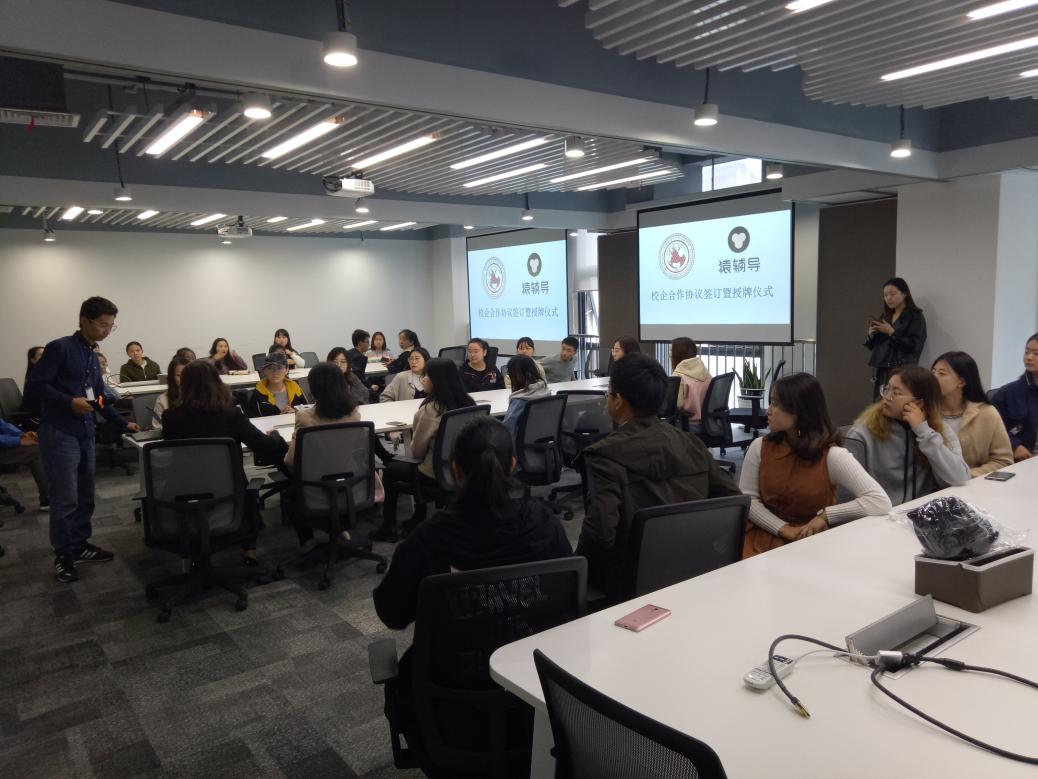 簽約儀式前,猿輔導(dǎo)相關(guān)負(fù)責(zé)人還帶領(lǐng)外國語學(xué)院學(xué)生代表參觀了猿輔導(dǎo)西安分公司的辦公環(huán)境。