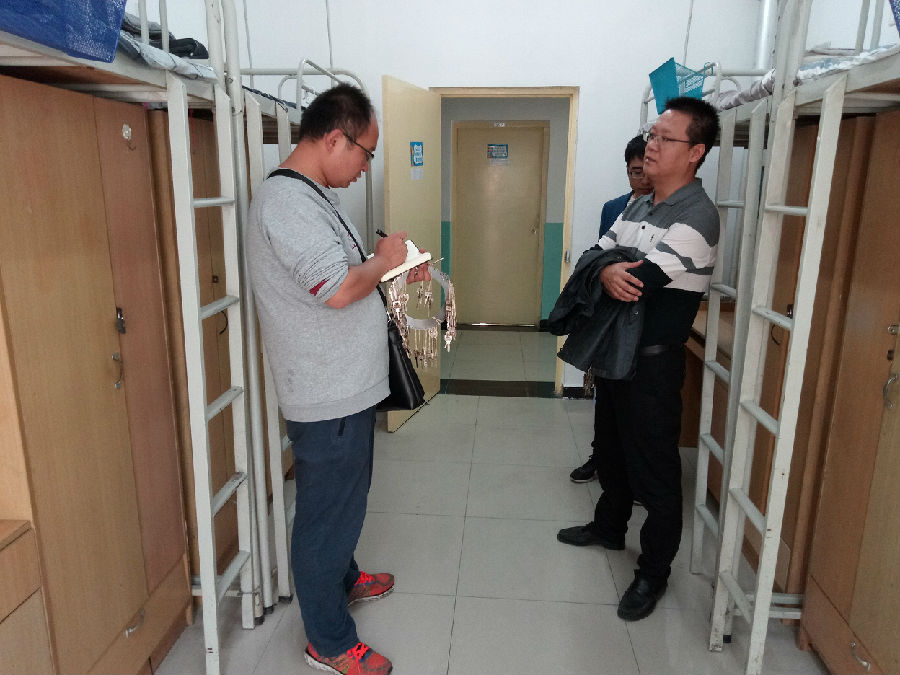 本次檢查內(nèi)容包括違規(guī)違禁電器,亂拉亂接電線插座、宿舍用水和內(nèi)務(wù)衛(wèi)生等。檢查組深入學(xué)生宿舍,認(rèn)真檢查水電安全和違規(guī)違禁物品,登記學(xué)生宿舍存在的問(wèn)題,解答學(xué)生就業(yè)考研等學(xué)習(xí)和生活中的一些疑問(wèn)。檢查組對(duì)學(xué)院四個(gè)年級(jí)學(xué)生宿舍進(jìn)行了拉網(wǎng)式排查,發(fā)現(xiàn)各年級(jí)不同程度存在內(nèi)務(wù)臟亂、未關(guān)閉電源等問(wèn)題,檢查組還對(duì)宿舍桌椅、墻面等存在的問(wèn)題進(jìn)行了登記。