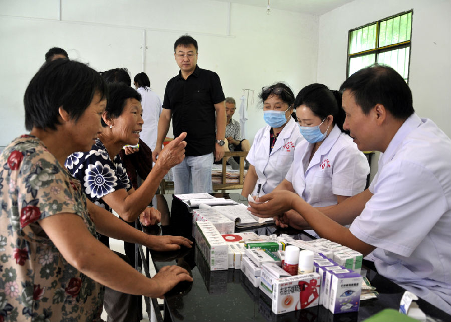 崔廣志院長帶領(lǐng)的專家團(tuán)隊(duì)根據(jù)新建村衛(wèi)生室的硬件設(shè)施和準(zhǔn)備驗(yàn)收的各項(xiàng)資料詳細(xì)檢查后所反饋的具體情況,捐贈(zèng)了辦公設(shè)備、醫(yī)療器械、宣傳展板等各類物資和資料,更加完善了村衛(wèi)生室各項(xiàng)設(shè)施建設(shè),加快了村衛(wèi)生室標(biāo)準(zhǔn)化建設(shè)的步伐;李明珠副院長對(duì)村衛(wèi)生室村醫(yī)寇永斌進(jìn)行了急診急救知識(shí)和操作培訓(xùn),提高村醫(yī)專業(yè)技術(shù)和醫(yī)療服務(wù)能力;專家團(tuán)隊(duì)隨后為村民進(jìn)行健康體檢、送醫(yī)送藥、健康咨詢和答疑、進(jìn)行新農(nóng)合政策的宣傳、發(fā)放健康宣教資料、建檔指導(dǎo)等一系列工作,倡導(dǎo)村民養(yǎng)成科學(xué)、文明、健康的生活方式。