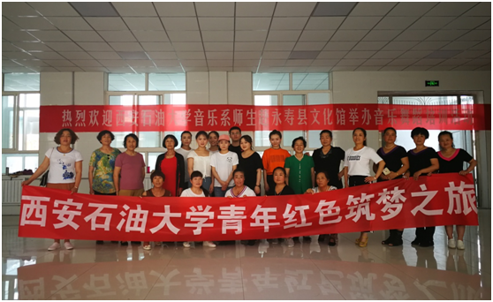 為全面貫徹落實習(xí)近平總書記回信精神,在校工會聯(lián)系下音樂系與永壽縣文化館開展結(jié)對子活動,引導(dǎo)青年扎根大地,了解國情、民情,助力教育扶貧,實現(xiàn)文化惠民。6月29日~7月2日為永壽縣文化館開展舞蹈、音樂培訓(xùn)活動。何云老師、張萌萌同學(xué)精心準備了適應(yīng)不同年齡段人群的藏舞、現(xiàn)代舞和拉丁舞;甘璐瑤等同學(xué)為永壽縣聲樂愛好者從呼吸、發(fā)聲、演唱技巧和樂理知識等方面進行指導(dǎo)。本次活動有近150名文藝愛好者參與,充分彰顯了我系的專業(yè)優(yōu)勢,提升師生的實踐能力,發(fā)揮音樂育人的作用,將藝術(shù)實踐與教育扶貧相結(jié)合,促進了永壽縣基層文藝隊伍建設(shè)。