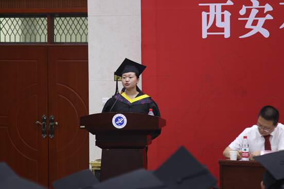 化工卓越1401班翟君葉代表學生發(fā)言。表達了2014級畢業(yè)生心聲。并祝福母校:人才輩出,桃李芬芳,明天更輝煌!