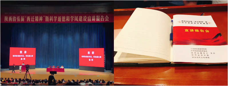5月28日下午,陜西省弘揚“西遷精神”暨科學道德和學風建設宣講報告會在陜西大會堂舉行。本次報告由中共陜西省委宣傳部、陜西省科學技術協(xié)會、陜西省教育廳、陜西科學院、陜西省社會科學院共同主辦,研究生院組織我校21名研究生師生代表,與導師代表、本科生代表等40人參加報告。