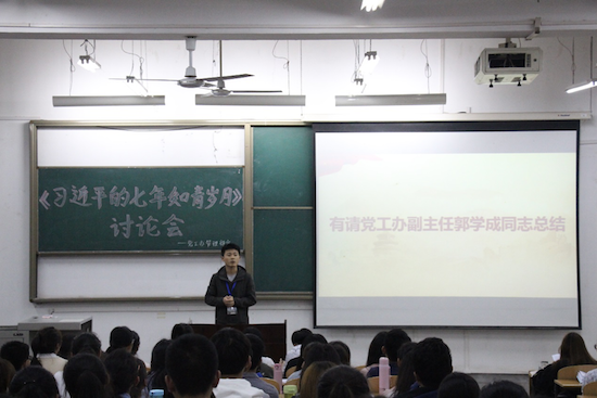 5月21日晚,經(jīng)濟管理學院《習近平的七年知青歲月》學習討論會于鄠邑校區(qū)教學B區(qū)125教室召開。學院黨工辦學生干部、學生黨員代表、入黨積極分子代表共計150余人參加。