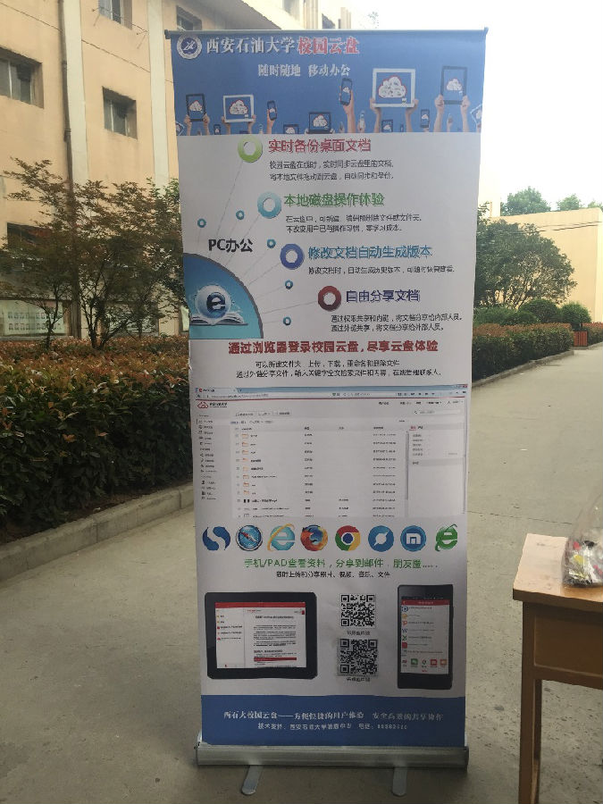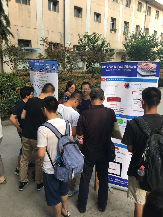 5月17日,為進(jìn)一步提高西安石油大學(xué)校園云盤(簡稱:西石大云盤)的登錄使用率,信息中心分別在鄠邑校區(qū)和雁塔校區(qū)舉辦了西石大云盤宣傳推廣活動(dòng)。西石大云盤是我校部署的私有云存儲(chǔ)系統(tǒng),具有個(gè)人網(wǎng)盤、課件共享、作業(yè)提交、團(tuán)隊(duì)協(xié)作等多種便捷功能,為我校師生提供了一個(gè)安全高效的教學(xué)科研數(shù)據(jù)與學(xué)習(xí)資料共享的存儲(chǔ)服務(wù)。