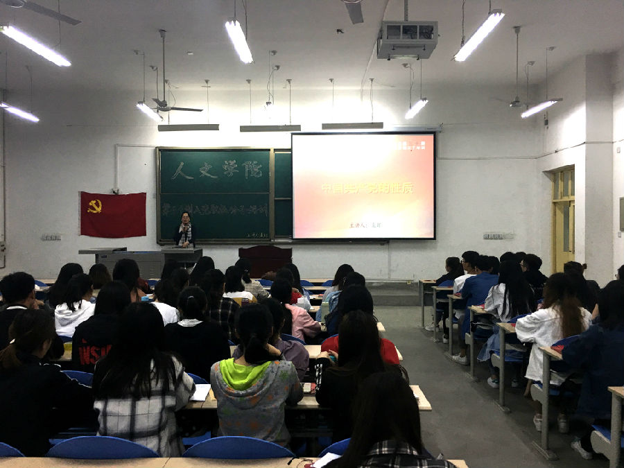 典禮過后,人文院黨委書記袁玎正式開始進行第一堂課的講授,袁書記深入淺出的為學員講述了什么是政黨,政黨的本質(zhì)及產(chǎn)生原因,歷史發(fā)展和基本特征,同時也為同學們講述了中國共產(chǎn)黨的產(chǎn)生和發(fā)展歷程,使同學們深入了解了黨發(fā)展壯大的艱辛歷史,對黨的性質(zhì)有了更深刻的認識,也對早日加入中國共產(chǎn)黨有了更加強烈的愿望。