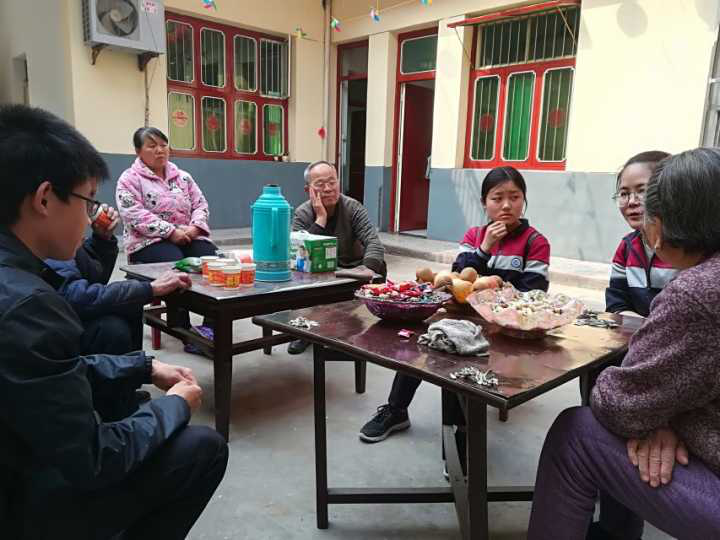 伴隨著大家的歡聲笑語,很快就到達(dá)了目的地。走進(jìn)文義村,受到了老年協(xié)會(huì)會(huì)長(zhǎng)熱情地招待。在這些孤寡老人之中,有六十年黨齡的老黨員,有教學(xué)三十載的老教師,有部隊(duì)上的老干部,也有勤勤懇懇勞作一輩子的農(nóng)民……他們給同學(xué)們講述了發(fā)生在他們身上真實(shí)的故事,與同學(xué)們分享他們?nèi)松猛局械乃崽鹂嗬?,并?duì)同學(xué)們諄諄教誨,同學(xué)們也給老人講述了如何科學(xué)地進(jìn)行自我照顧,以及幫老人做力所能及的家務(wù)農(nóng)活。在與老人的交流中,同學(xué)們真切地感受到老人們那個(gè)年代生活的艱辛以及自己身處如今社會(huì)的幸福。