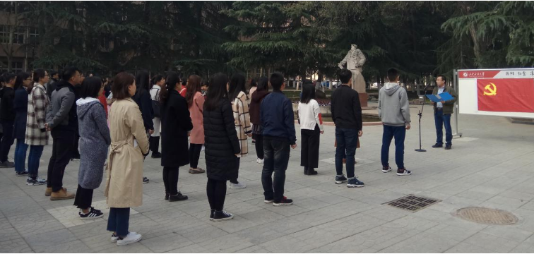為扎實(shí)推進(jìn)“兩學(xué)一做”學(xué)習(xí)教育常態(tài)化制度化,增強(qiáng)新黨員的黨性意識(shí),3月22日上午,研究生院黨委在雁塔校區(qū)鐵人廣場(chǎng)為新黨員舉行了入黨集體宣誓儀式。研究生院黨委副書記范琦、組織員高黎及2017年底發(fā)展的110名研究生預(yù)備黨員參加儀式。