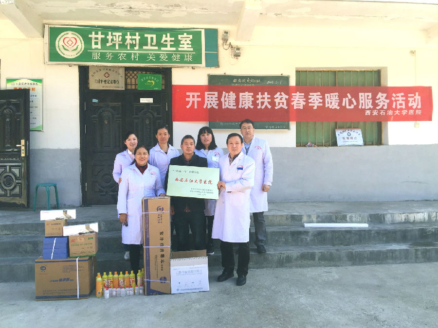 2018年3月13日,西安石油大學(xué)醫(yī)院崔廣志院長帶領(lǐng)醫(yī)務(wù)人員組成專家團(tuán)隊(duì)一行6人,赴對口幫扶的藍(lán)田縣輞川鎮(zhèn)甘家坪村進(jìn)行“對口幫扶村衛(wèi)生室掛牌和健康扶貧春季暖心活動”。