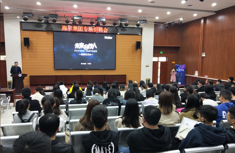 3月9日下午2點,應(yīng)經(jīng)濟管理學(xué)院之邀,海爾集團專場招聘會在我校人文經(jīng)管樓118隆重舉行。海爾集團西北大區(qū)人力資源部總監(jiān)陳鵬,海爾集團陜西分公司人力資源部部長茍娟紅,經(jīng)濟管理學(xué)院副院長吳勛,學(xué)管辦主任劉冰,14級輔導(dǎo)員尹曉嬌、王曉天及全校200余名畢業(yè)生出席了招聘會。
