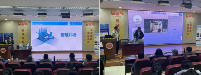 之后方昕老師帶領同學們走進智慧井場,介紹了油田鉆井作業(yè)中存在的安全事故風險,科普了基于物聯(lián)網(wǎng)技術的智能油田管理系統(tǒng)模塊與功能,生動闡述了利用物聯(lián)網(wǎng)、人工智能、大數(shù)據(jù)技術為井場安全作業(yè)提供的智能解決方案,提高作業(yè)安全性和可靠性,提升井場運營效率,特別強調了未來智慧井場、智慧油田建設需要多學科交叉復合型人才,鼓勵同學們樹立科技報國信念,用青春之力端牢能源飯碗。參展同學現(xiàn)場演示了井場工作流程,并對突發(fā)狀況的應急處置進行了精彩講述。臺下的同學們站立圍觀、目不轉睛,當井場溫度超標時,系統(tǒng)發(fā)出的預警聲博得同學們地陣陣喝彩。