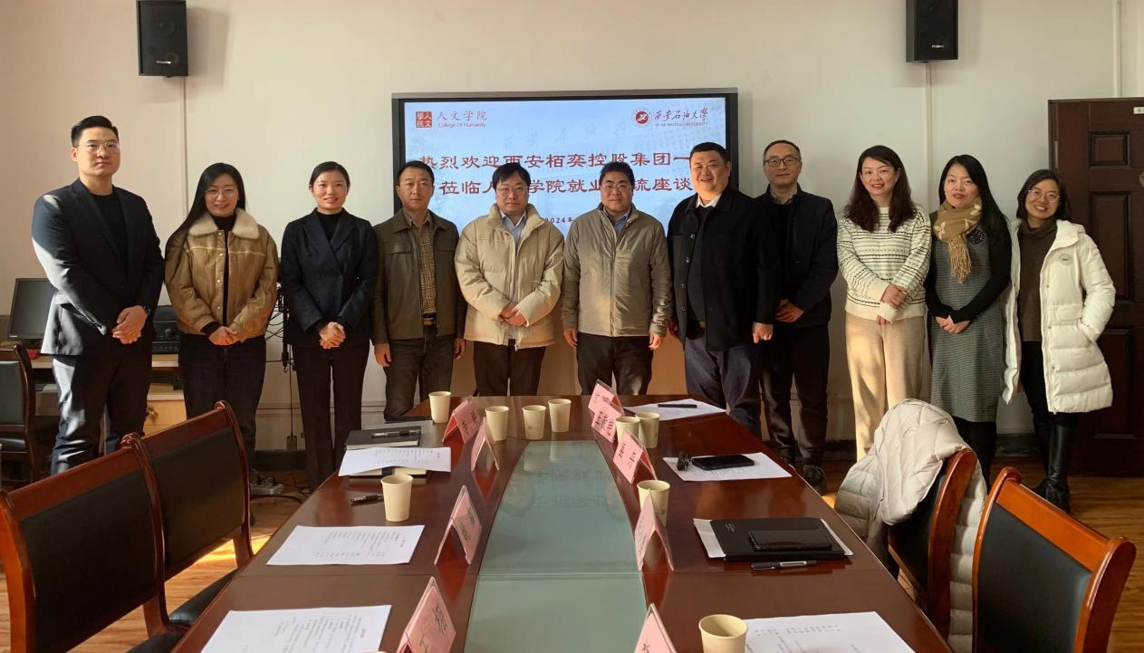1月11日上午,人文學(xué)院與西安栢奕控股集團(tuán)有限公司在雁塔校區(qū)華油能源樓813室舉行了就業(yè)合作交流座談會。西安浐灞生態(tài)區(qū)投資商務(wù)局姚鑫、人才交流服務(wù)中心負(fù)責(zé)人王栩,西安栢奕控股集團(tuán)有限公司人力資源總監(jiān)王汐妍、企業(yè)招聘專家曹孔,學(xué)工部副部長、就業(yè)指導(dǎo)中心負(fù)責(zé)人樊曉旭,人文學(xué)院黨委書記余小勇、副書記盛丹、各專業(yè)教師代表、學(xué)工辦主任付強(qiáng)以及畢業(yè)生輔導(dǎo)員李嶠、樊煜參加了此次座談。