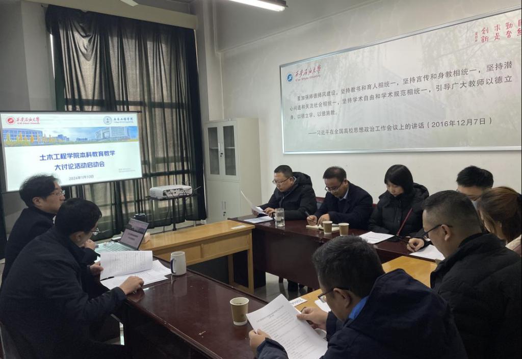 為進一步形成對本科教育教學(xué)高質(zhì)量發(fā)展的思想共識與行動自覺,深化本科教育教學(xué)改革,全面提升人才培養(yǎng)質(zhì)量。土木工程學(xué)院于1月10日上午在雁塔校區(qū)2教1105召開本科教育教學(xué)思想大討論活動啟動會。會議由副院長崔瑩主持,學(xué)院黨委書記陳濤、副院長李俊亭、副院長崔瑩、各系(中心)主任及教師代表參加會議。
