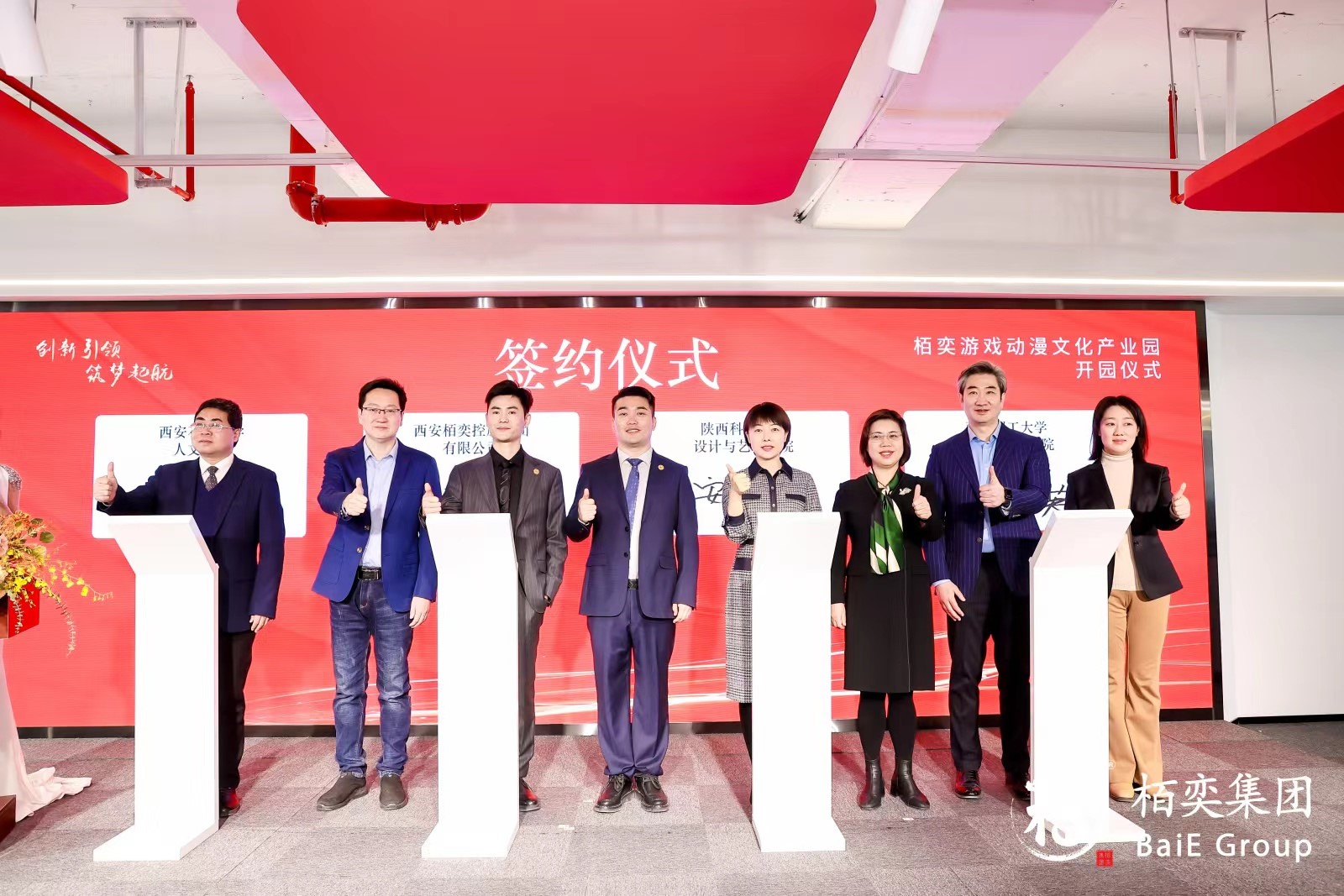 西安浐灞國(guó)際港黨群工作部、宣傳文旅局、城管局、投資商務(wù)局,以及各高校、協(xié)會(huì)、企業(yè)代表等160余人出席本次開(kāi)園儀式。我校就業(yè)指導(dǎo)中心副主任樊曉旭、人文學(xué)院黨委書(shū)記余小勇、人文學(xué)院黨委副書(shū)記盛丹、人文學(xué)院教授肖雪峰等一行出席活動(dòng)。在校企簽約儀式上,余小勇與栢奕集團(tuán)董事長(zhǎng)任占奎簽訂了校企合作協(xié)議,栢奕集團(tuán)副總?cè)味Y煜向肖雪峰頒發(fā)了專(zhuān)家聘書(shū)。