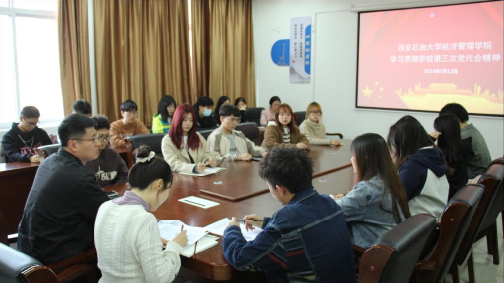 為進一步加強團學干部思想政治建設(shè),提升理論水平,深入學習貫徹2024年全國兩會精神與學校第三次黨代會精神,經(jīng)濟管理學院于3月13日下午在鄠邑校區(qū)崇文樓305會議室舉辦團學干部學習交流分享會。經(jīng)濟管理學院團委書記李博文、團學指導老師任仰及主要團學工作干部參加本次活動。