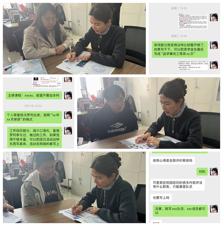 簡歷作為求職過程中體現(xiàn)自身就業(yè)本領(lǐng)重要的一環(huán),畢業(yè)班輔導(dǎo)員定期為畢業(yè)生修改簡歷、提升簡歷質(zhì)量,并結(jié)合自身經(jīng)驗(yàn),對簡歷中模板、格式、語言表達(dá)等方面存在的問題一一指出,為在日益緊迫的求職熱潮中助畢業(yè)生一臂之力。