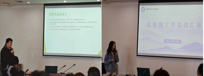 學院團委學生會各部門主要負責人依次進行述職匯報,以PPT形式就2023年度工作成果,組織建設、日常事務等情況進行匯報,深度剖析了工作中遇到的問題與挑戰(zhàn),對不足之處進行反思,同時提出了新一年的工作規(guī)劃和暢想。他們表示將發(fā)揮好師生之間的橋梁紐帶作用,切實解決身邊同學的合理訴求,用實際行動為同學做好事、做實事,凝心聚力,齊同并進。