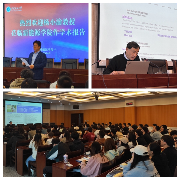 報告會上,楊小渝教授結(jié)合自己在材料基因工程領(lǐng)域多年的研究和積累,闡述了高通量材料計算和篩選的基本概念和特點,以鋰電池負極材料篩選、多組元合金設(shè)計,環(huán)氧樹脂基復(fù)合材料配方設(shè)計、高分子大模型構(gòu)建等為案例,分析和講解高通量材料計算的核心要素,開展步驟,以及MatCloud材料智算云平臺。接下來,楊小渝教授詳細分析了人工智能在新能源、新材料、石油石化領(lǐng)域的應(yīng)用前景。最后,楊小渝教授結(jié)合自身情況,向同學們講述了自己的求學之路以及行之有效的學習方法,他勉勵同學們在學習上要夯實基礎(chǔ)、勤奮努力,要善于養(yǎng)成獨立思考和解決問題的能力。在提問環(huán)節(jié)中,楊小渝教授就大家提出的問題進行了詳細的解答。