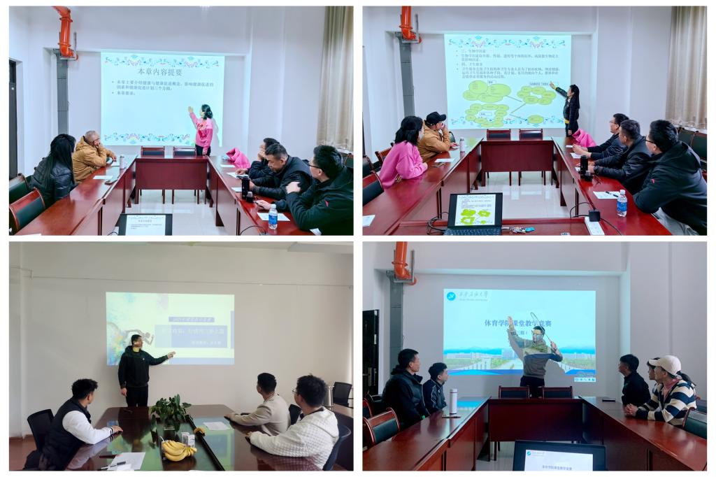 本次競(jìng)賽由體育學(xué)院教師全員參與,各教研小組分組別進(jìn)行組織開(kāi)展,呈現(xiàn)了多場(chǎng)次精彩紛呈的教學(xué)比拼活動(dòng)。本次課堂教學(xué)競(jìng)賽以教學(xué)方法創(chuàng)新、教學(xué)內(nèi)容設(shè)計(jì)、教學(xué)案例展示等形式展開(kāi),內(nèi)容涵蓋大學(xué)體育各專項(xiàng)(足球、籃球、排球、乒乓球、羽毛球、網(wǎng)球、武術(shù)、健美操、休閑體育等)項(xiàng)目,以及社會(huì)體育指導(dǎo)與管理專業(yè)理論課程(運(yùn)動(dòng)訓(xùn)練學(xué)、運(yùn)動(dòng)生理學(xué)、體育保健學(xué)等)內(nèi)容。教學(xué)競(jìng)賽中,參賽教師通過(guò)精心準(zhǔn)備的教學(xué)案例和生動(dòng)形象的教學(xué)示范,向評(píng)委和觀眾展現(xiàn)了各自不同的教學(xué)水平和教學(xué)風(fēng)采,充分展示了每位教師的教學(xué)設(shè)計(jì)能力和教學(xué)創(chuàng)新意識(shí)。