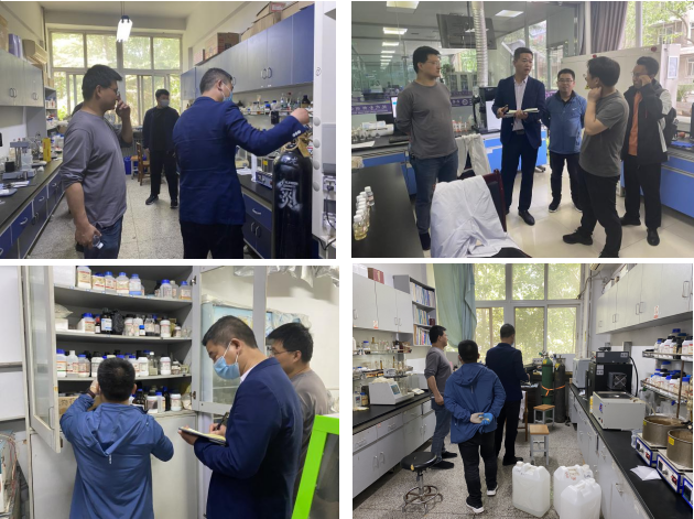 5月9日下午,劉濤一行在賈新剛老師、周毅華老師的帶領下,逐一對化學化工學院各實驗室進行了安全隱患排查。排查過程中,不僅幫同學們回顧了上午培訓內(nèi)容,同時幫實驗室找出了安全隱患,并詳細講解了整改措施以及發(fā)生險情后的處置方法。