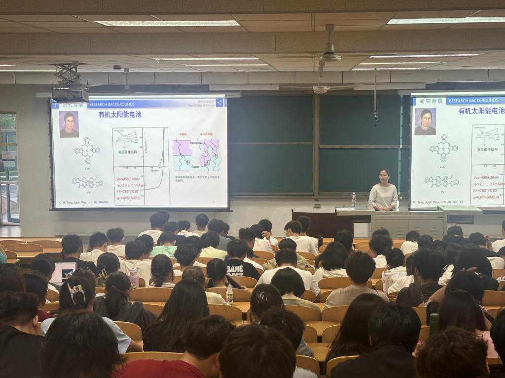 5月15日晚,學院新程大講堂第8講“光伏發(fā)電技術(shù)-有機太陽能電池”在鄠邑校區(qū)A139室開講。本次講座特邀學院新能源材料與器件系高歡歡擔任主講,學院2023級全體學生參加。講座中,高歡歡首先介紹了自己的學習和工作經(jīng)歷,接著向大一的同學們科普了當前全球能源的嚴峻形勢,強調(diào)新型綠色能源的開發(fā)和利用的必要性和緊迫性,詳細解讀了“雙碳”戰(zhàn)略提出的背景和重大意義,并由此引入講座的主題“體相異質(zhì)結(jié)有機太陽電池”。通過對從“器件效率”-“大面積柔性?!?span lang="EN-US">-“低成本光伏器件”-“綠色溶劑”-“穩(wěn)定性/壽命”不同發(fā)展階段,以及工作原理的詳細講解,讓同學們對自己所在的學科背景和知識有了更深層次的認識。最后,高歡歡向同學們介紹了體相異質(zhì)結(jié)有機太陽能電池的發(fā)展趨勢,以及光伏器件和活性層的制備過程和方法,并結(jié)合學院的課程設(shè)置,帶領(lǐng)同學們進一步了解所學專業(yè)的培養(yǎng)方案和培養(yǎng)目標,鼓勵同學們不斷提高自身專業(yè)能力,在專業(yè)領(lǐng)域持續(xù)深耕,積極投身到我國的新能源行業(yè)建設(shè)當中去。