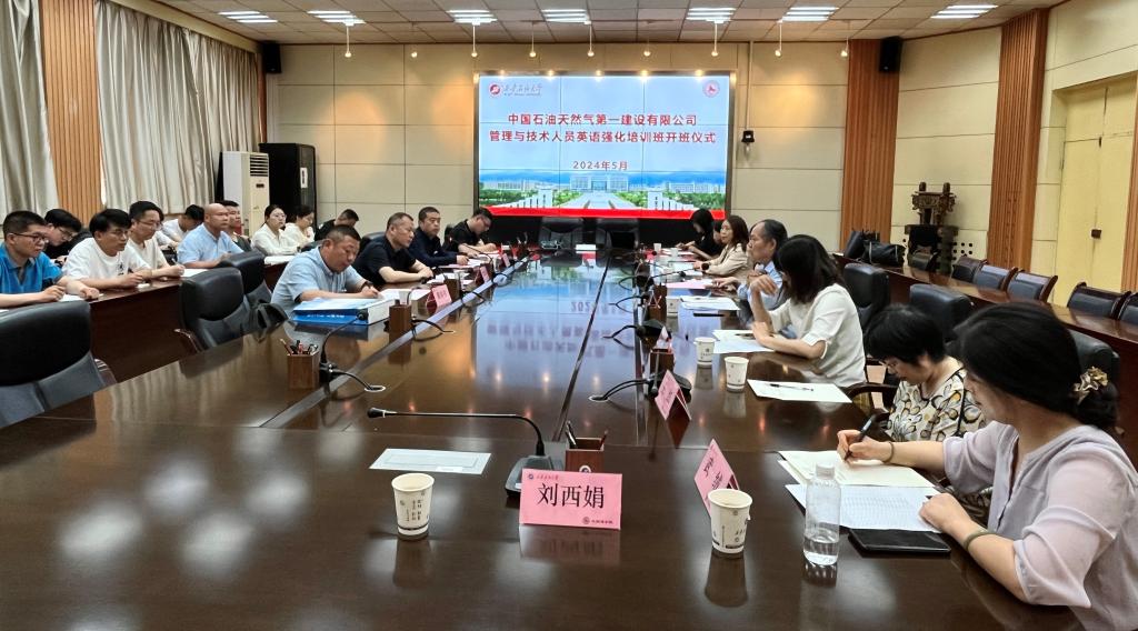 5月17日上午,外國語學(xué)院在雁塔校區(qū)會議中心第二會議室舉行了中國石油天然氣第一建設(shè)有限公司“國際合作工程技術(shù)與管理人員英語強(qiáng)化培訓(xùn)班”開班儀式。中國石油天然氣第一建設(shè)有限公司第五分公司經(jīng)理常曉鋒、總經(jīng)濟(jì)師汪洋、學(xué)院黨委書記田虹霞、副院長劉輝、MTI中心主任袁森、部分任課教師及全體培訓(xùn)學(xué)員參加。