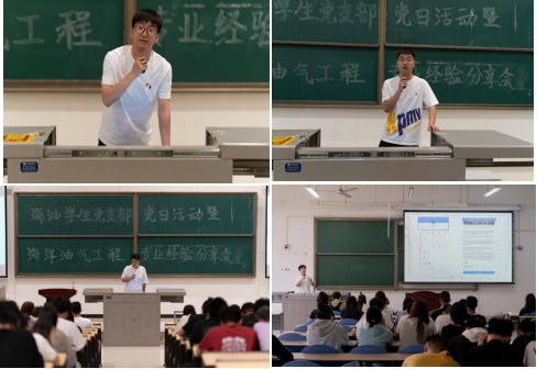 “我們馬上就要畢業(yè)了,在離開母校之前一直想為學院和同學們做點實事,感謝學院為我們提供了這么一個‘傳幫帶’的交流平臺,我非常榮幸能把大學四年以來的學習經(jīng)驗和體會分享給學弟學妹們,希望能幫到他們。”海油學生黨支部書記陳科棋說。