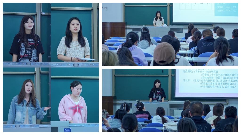 5月29日下午,人文學院于鄠邑校區(qū)A502舉辦“榜樣引領 博采眾長”考研經驗分享會。本次分享會聚焦于中新聞專業(yè),邀請人文學院考取四川大學的趙文茜、鄭州大學的朱玥瑤、西安石油大學的赫雅婷以及江蘇師范大學的張晏梓四位同學主講,旨在通過2024屆已錄取高分學生的親身經歷和寶貴建議,激勵和幫助更多學子高效備考。2021級輔導員張馨元及百余名計劃考研學生參加會議。