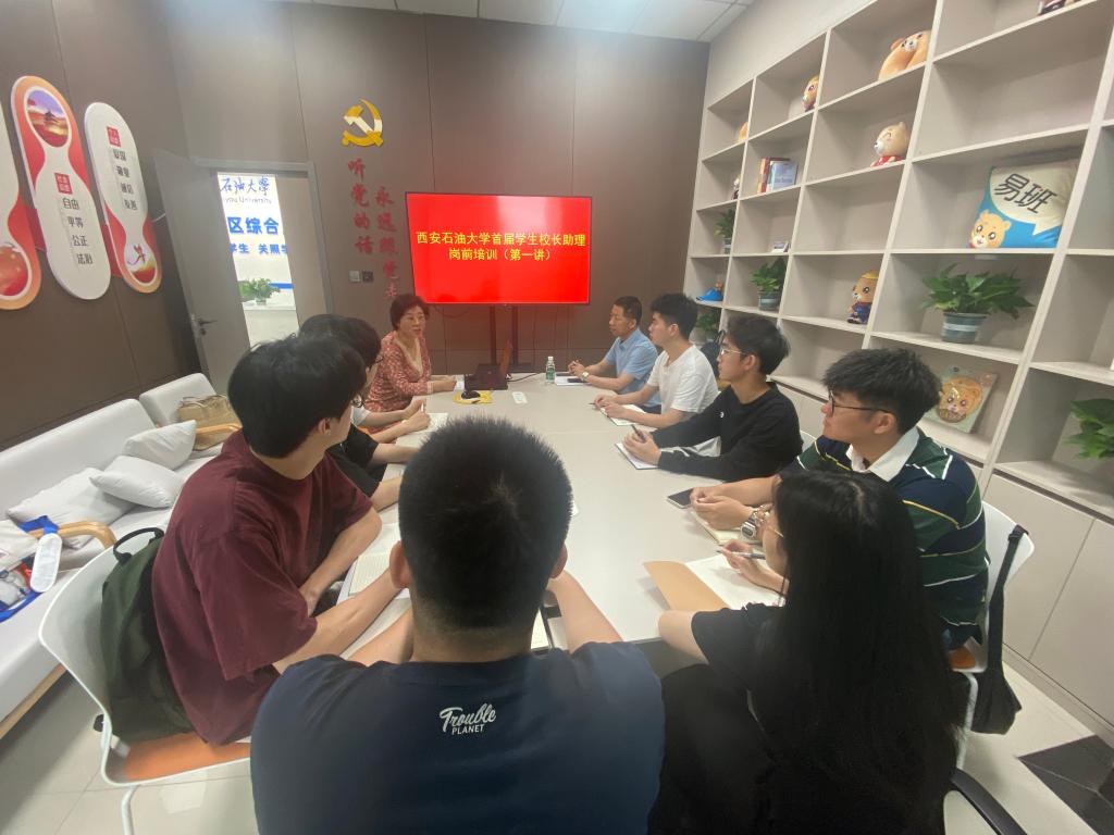 6月7日上午,西安石油大學(xué)首屆學(xué)生校長(zhǎng)助理崗前培訓(xùn)第一講在我校鄠邑校區(qū)一站式學(xué)生社區(qū)綜合服務(wù)大廳初心洽談室順利舉行,體育學(xué)院黨總支書(shū)記茍毅飛受邀擔(dān)任主講嘉賓,全體學(xué)生校長(zhǎng)助理參會(huì)。培訓(xùn)由學(xué)生工作處副處長(zhǎng)畢軼慧主持。