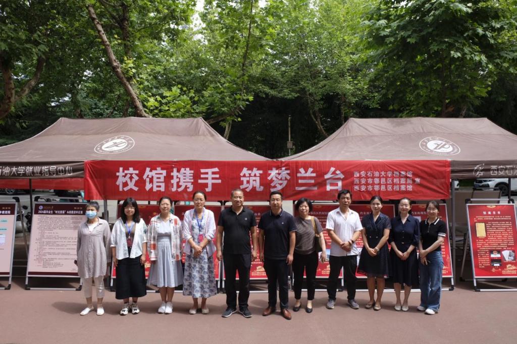 會(huì)后,鄠邑區(qū)檔案館館長葛紅衛(wèi)一行參觀了校史館。參觀結(jié)束后,雙方聯(lián)合開展了“校館攜手,筑夢蘭臺(tái)‘6·9’國際檔案日主題宣傳”活動(dòng),重點(diǎn)對《檔案法實(shí)施條例》、畢業(yè)生檔案辦理流程和檔案征集活動(dòng)進(jìn)行了宣傳?;顒?dòng)在鄠邑校區(qū)B區(qū)食堂門前舉行。