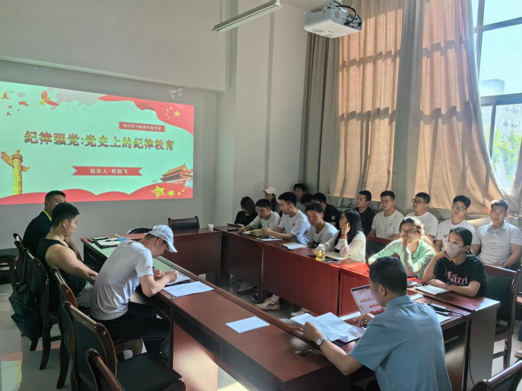 6月7日下午,體育學(xué)院學(xué)生黨支部在鄠邑校區(qū)東操場208會議室召開全體黨員大會,開展黨支部學(xué)習(xí)教育活動。學(xué)院黨總支書記茍毅飛全程參加指導(dǎo)并講授紀(jì)律黨課。會議由黨支部書記侯陽主持,全體研究生、本科生黨員參加會議。