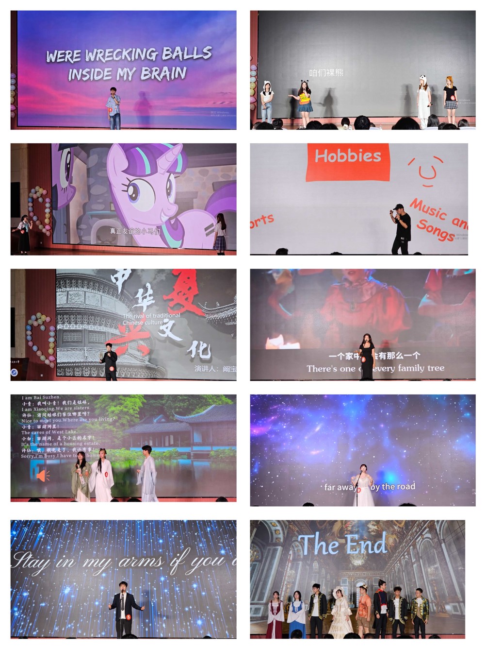 本次大賽經(jīng)過預(yù)賽、復(fù)賽歷時一個月,最終有十支參賽隊伍進入決賽。決賽中,參賽選手通過歌曲、話劇、演講、配音等形式,為觀眾帶來了一場視聽盛宴。經(jīng)過先后兩輪的激烈角逐,最終大賽評委根據(jù)參賽選手兩回合的現(xiàn)場表現(xiàn),評選出了本次賽事的獲獎選手。新能源學(xué)院選手史沐涵配音《Tough Love》榮獲一等獎,電子工程學(xué)院選手孫浩琰等7位同學(xué)話劇《皇帝的新裝》、電子工程學(xué)院選手馬駿中演講《Appreciate Music and Enjoy it》榮獲二等獎,經(jīng)濟管理學(xué)院選手艾海提演唱《I Have Nothing》、外國語學(xué)院選手黃賀等三位同學(xué)配音《咱們裸熊》、理學(xué)院選手白慕寧等兩位同學(xué)配音《小馬寶莉》榮獲三等獎,其余四組選手榮獲優(yōu)秀獎。