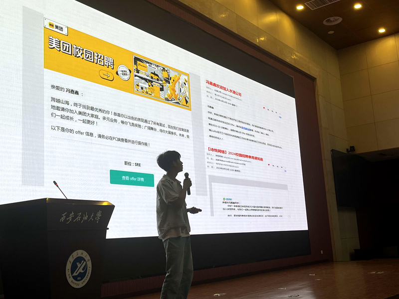 講座伊始,高博首先為同學(xué)們分享了當(dāng)前計(jì)算機(jī)就業(yè)市場的趨勢和變化,強(qiáng)調(diào)了技能培養(yǎng)的重要性以及如何通過實(shí)習(xí)和項(xiàng)目經(jīng)驗(yàn)增強(qiáng)自身競爭力。隨后介紹了2024屆秋招以及春招的相關(guān)情況,通過強(qiáng)調(diào)校招呈現(xiàn)出的招聘需求減少、招聘節(jié)奏緩慢和求職人數(shù)下降的現(xiàn)實(shí),提醒同學(xué)們不可盲目樂觀,要樹立理性平實(shí)的就業(yè)觀念。此外,高博還分析了IT行業(yè)的自身優(yōu)勢,解析IT大廠的招聘要點(diǎn),從筆試、面試、實(shí)習(xí)等環(huán)節(jié)列舉應(yīng)聘者的優(yōu)秀素養(yǎng),強(qiáng)調(diào)不斷提高個人核心競爭力尤為關(guān)鍵。最后,高博希望同學(xué)們立足實(shí)際,找準(zhǔn)定位,保持旺盛的學(xué)習(xí)精力,不斷提升學(xué)習(xí)能力,以良好的精神面貌迎接個人發(fā)展中的各種挑戰(zhàn)。