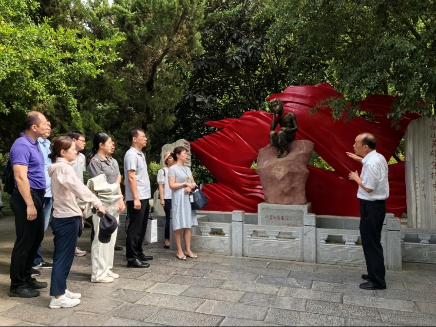 西安市蓮湖公園是陜西省100處紅色教育旅游地之一,是西安市首家廉政教育主題公園,也是隱于鬧市的紅色革命熱土。大家在“見蓮思廉,清風廉韻”的文化氛圍中,依次參觀了紅蓮丹心、蓮子家訓、蓮語詩堤、蓮韻清風四個主題文化區(qū)和蓮湖紅色記憶主題展覽館。在小蘿卜頭雕塑前,談建勤詳細介紹了“小蘿卜頭”宋振中的成長和革命故事,為大家講述了一堂鮮活生動的黨課。在中共西安情報處交通聯絡站奇園茶社遺址前,談建勤要求大家要銘記先烈精神,傳承紅色基因,堅定教育初心,鑄牢拒腐防變的思想防線。漫步在蓮花盛開的園內,老師們還認真學習了張載的“橫渠四句”、楊震的“四知拒金”、王陽明“優(yōu)獎龍韜”等歷史名言和文化典故,品味和感悟蓮“廉”于景的獨特魅力。