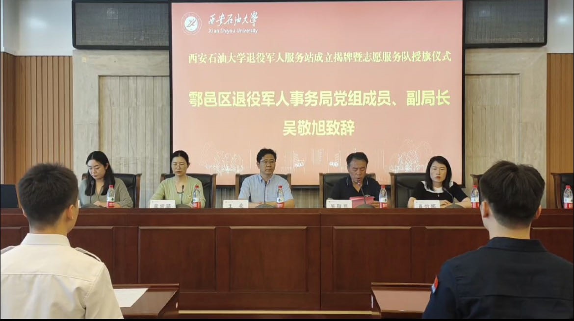 為做好退役大學生士兵服務(wù)保障工作,進一步拓展其服務(wù)領(lǐng)域,持續(xù)提升退役大學生士兵獲得感、幸福感、榮譽感,西安石油大學于7月4日下午在圖書館第一會議室隆重舉行退役軍人服務(wù)站成立揭牌暨志愿服務(wù)隊授旗儀式。鄠邑區(qū)退役軍人事務(wù)局黨組成員、副局長吳敬旭、西安石油大學學生工作部(武裝部)部長王亮、機械工程學院副院長章婭菲、相關(guān)部門工作人員及退役大學生士兵代表共40余人參加,機械工程學院學工辦主任王璟主持。