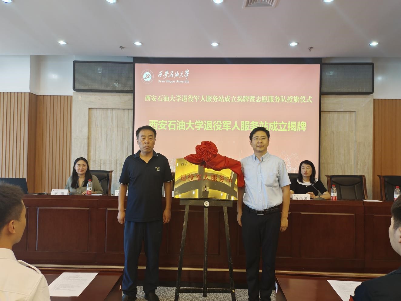 儀式上,吳敬旭、王亮為我校退役軍人服務(wù)站共同揭牌。