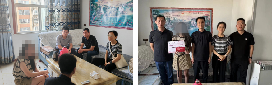 走訪期間,張云姿與受訪學生及家長進行親切交談,詳細介紹了此次走訪目的;深入了解了學生家庭基本狀況、主要經(jīng)濟來源、地方政府對家庭的幫扶情況以及存在的主要困難,并代表學校和學院為受訪學生家庭送上慰問金和慰問品。同行老師向學生和家長宣傳了國家和學校的資助政策,反饋了學生在校期間的日常表現(xiàn)和學習情況,鼓勵學生要堅定信心、腳踏實地、勤奮學習,以優(yōu)異的表現(xiàn)回饋家庭、學校和社會。