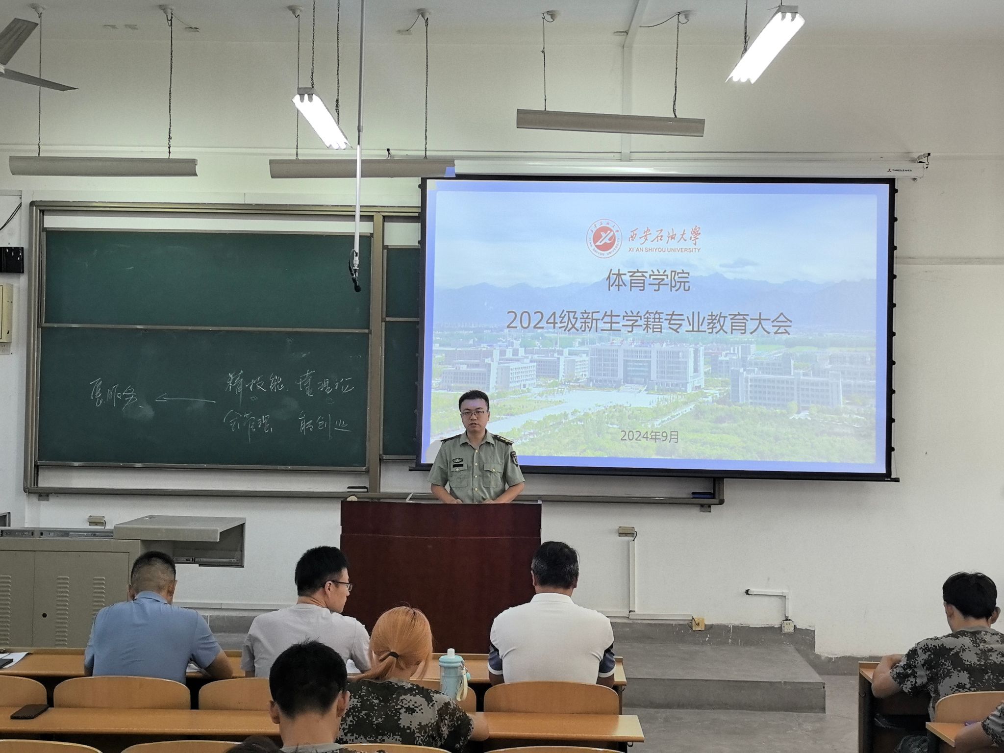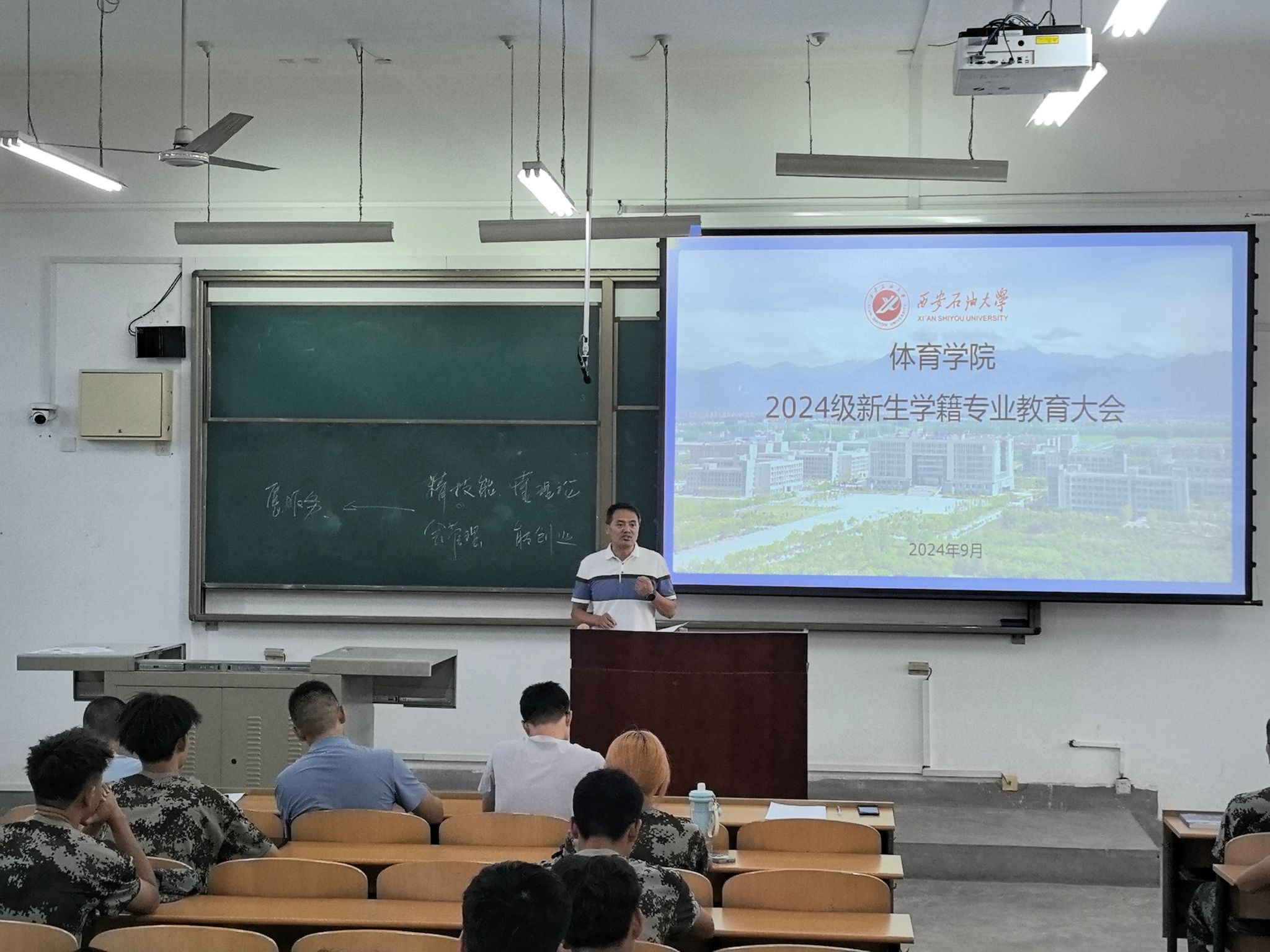 為指導(dǎo)和幫助2024級(jí)新生盡快了解和適應(yīng)新環(huán)境,熟悉所學(xué)專業(yè)的培養(yǎng)目標(biāo)、培養(yǎng)方式和畢業(yè)要求,更好地了解本科學(xué)生學(xué)籍管理?xiàng)l例、紀(jì)律處分條例及獎(jiǎng)助條例,做好學(xué)業(yè)規(guī)劃,快速適應(yīng)大學(xué)學(xué)習(xí),促進(jìn)學(xué)風(fēng)建設(shè)。9月8日下午,體院學(xué)院在鄠邑校區(qū)博思樓317教室召開(kāi)2024級(jí)新生見(jiàn)面會(huì)暨學(xué)籍專業(yè)教育大會(huì)。學(xué)院黨總支書(shū)記茍毅飛、院長(zhǎng)李壽邦、社會(huì)體育指導(dǎo)與管理專業(yè)教研室主任胥山出席大會(huì),會(huì)議由2024級(jí)新生輔導(dǎo)員張澤正主持。