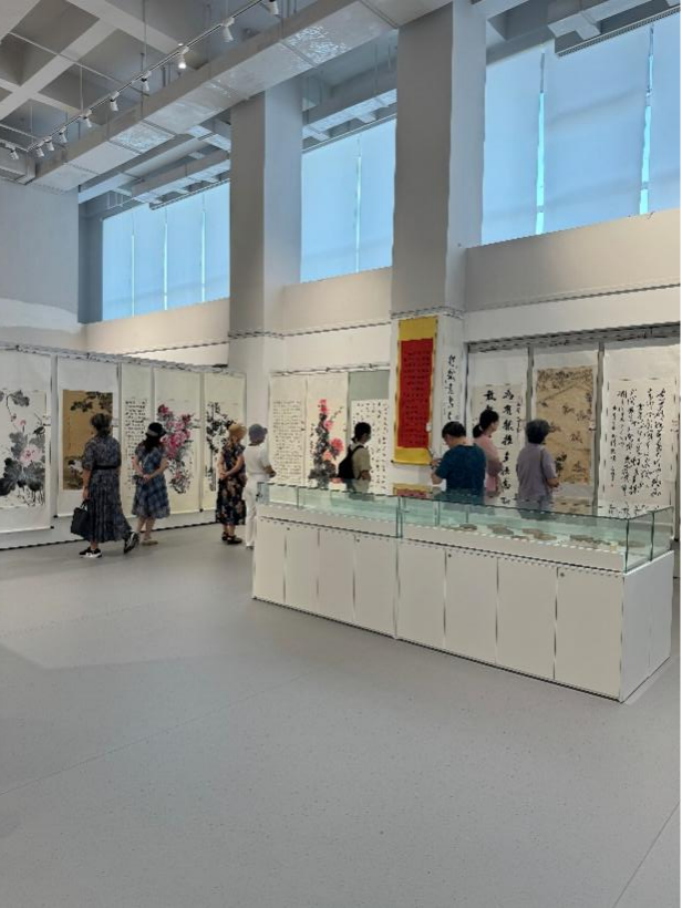 本次作品展共展出近百余幅作品,有我校參展作品15幅。活動(dòng)展現(xiàn)了作者良好的綜合素質(zhì)和對(duì)傳統(tǒng)文化的追求,表達(dá)了他們對(duì)祖國(guó)對(duì)家鄉(xiāng)的無(wú)限熱愛和老有所學(xué)、老有所為、老有所樂的生活態(tài)度,我校離退休教職工也為我校參展作品能夠參展感到自豪和驕傲。書畫作品都栩栩如生、惟妙惟肖,展廳彌漫著墨香氣息,吸引著觀眾駐足欣賞、品鑒交流、拍照留念。
