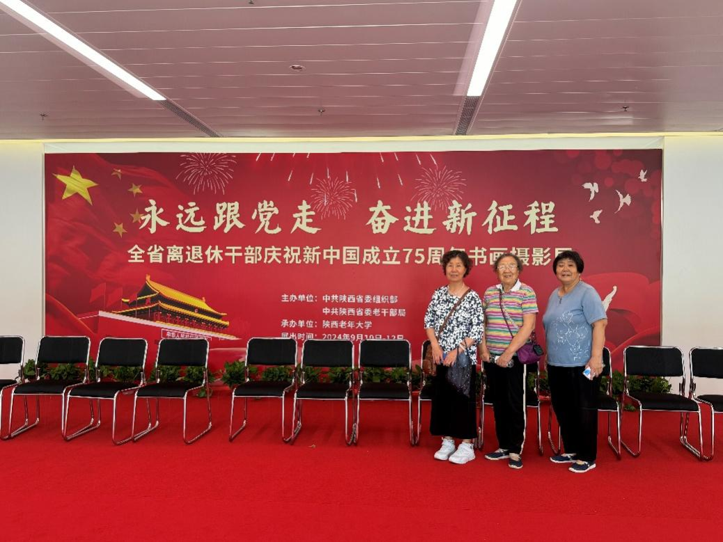為慶祝中華人民共和國(guó)成立75周年,展示優(yōu)秀成果,營(yíng)造濃厚文化氛圍,9月10日,由中共陜西省委組織部、中共陜西省委老干部局主辦,陜西老年大學(xué)承辦的“永遠(yuǎn)跟黨走 奮進(jìn)新征程”全省離退休干部慶祝新中國(guó)成立75周年書畫攝影展在陜西省文化館和陜西老年大學(xué)舉辦,我校組織離退休教職工參加此次活動(dòng)開幕式并觀展。