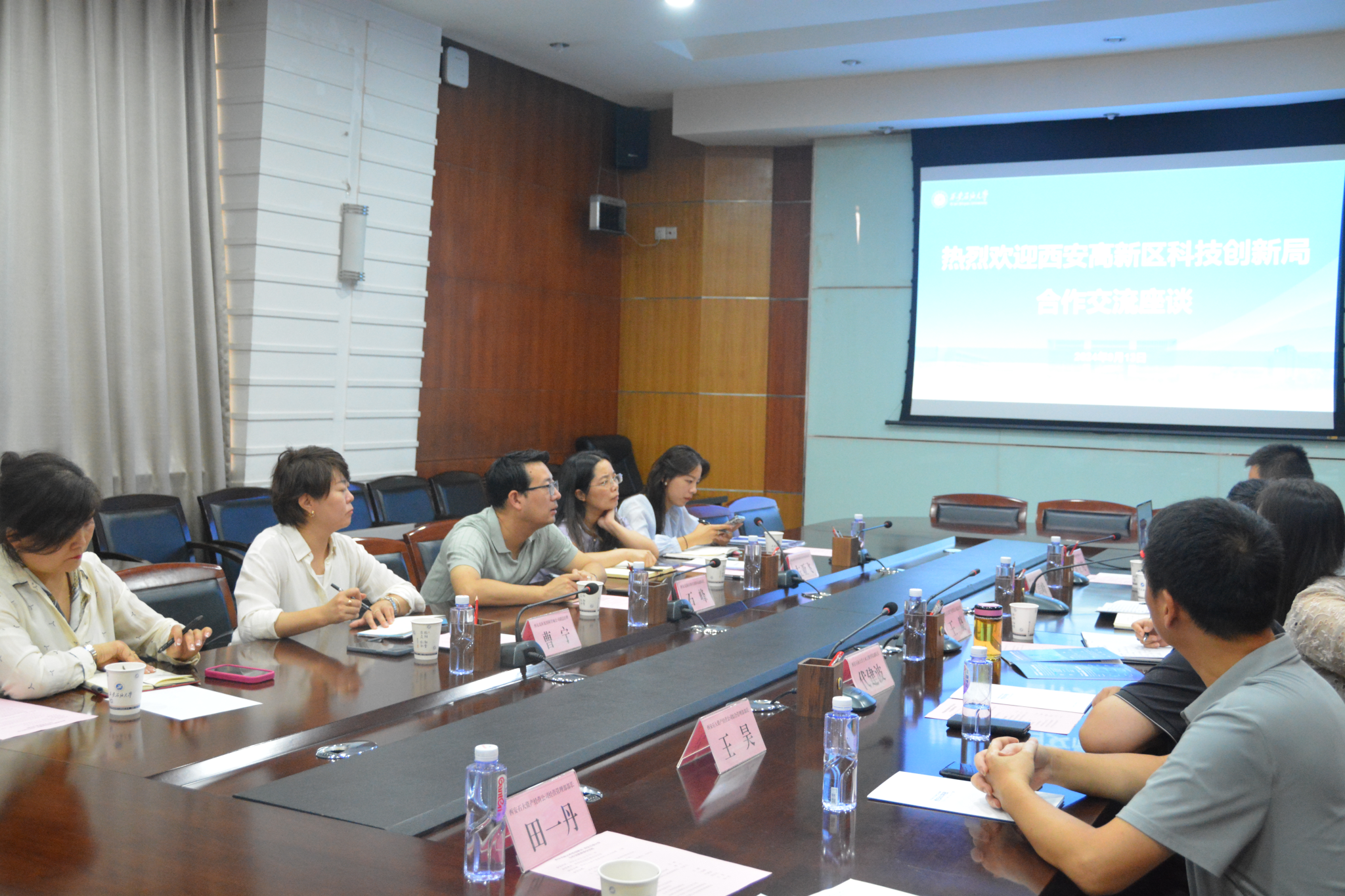 9月13日下午,西安高新區(qū)科技創(chuàng)新局副局長石峰一行應(yīng)邀來我校走訪交流,座談會在雁塔校區(qū)西階會議中心第四會議室舉行。會議由資產(chǎn)經(jīng)營公司總經(jīng)理王曉主持,科研處負(fù)責(zé)同志和教師代表參加會議。